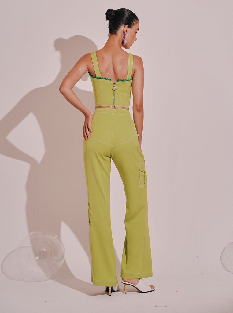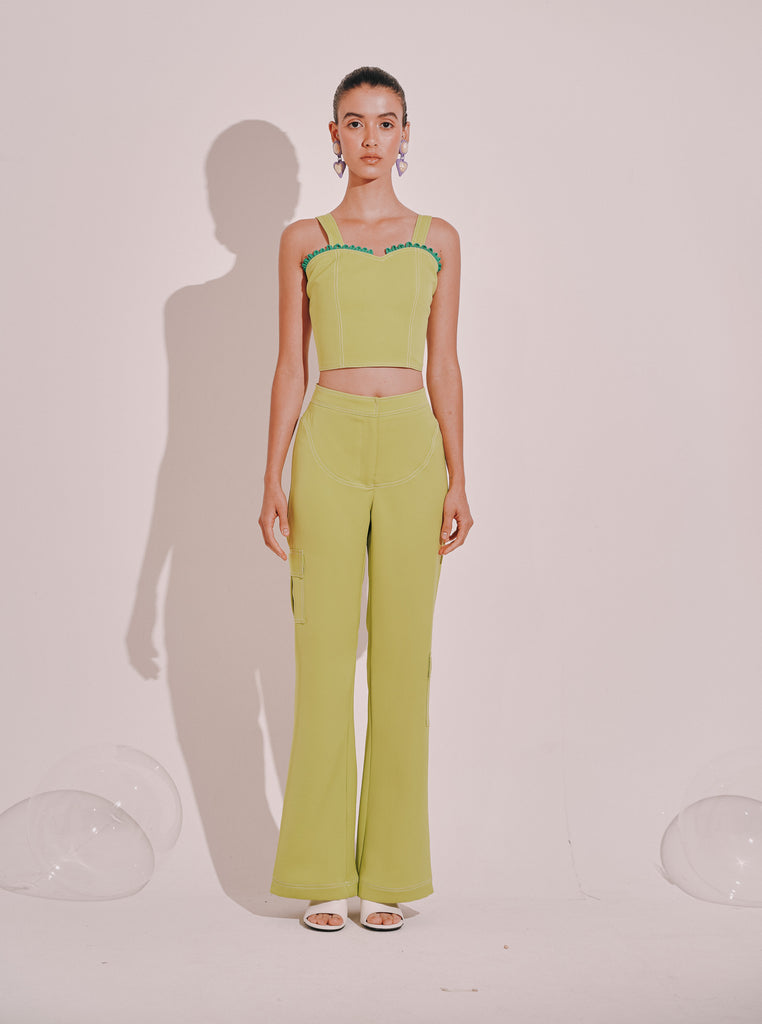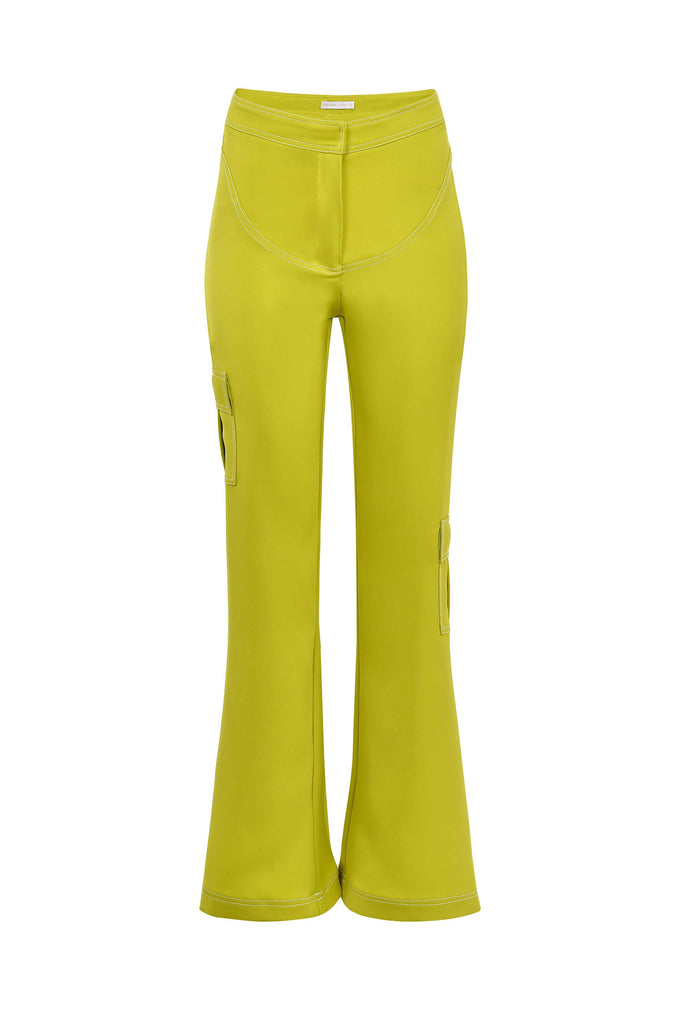 Mariaisabel re-imagined the renowed cargo pants by feauturing a wavy contrast stitching detail at the hips, for a better-looking fit.