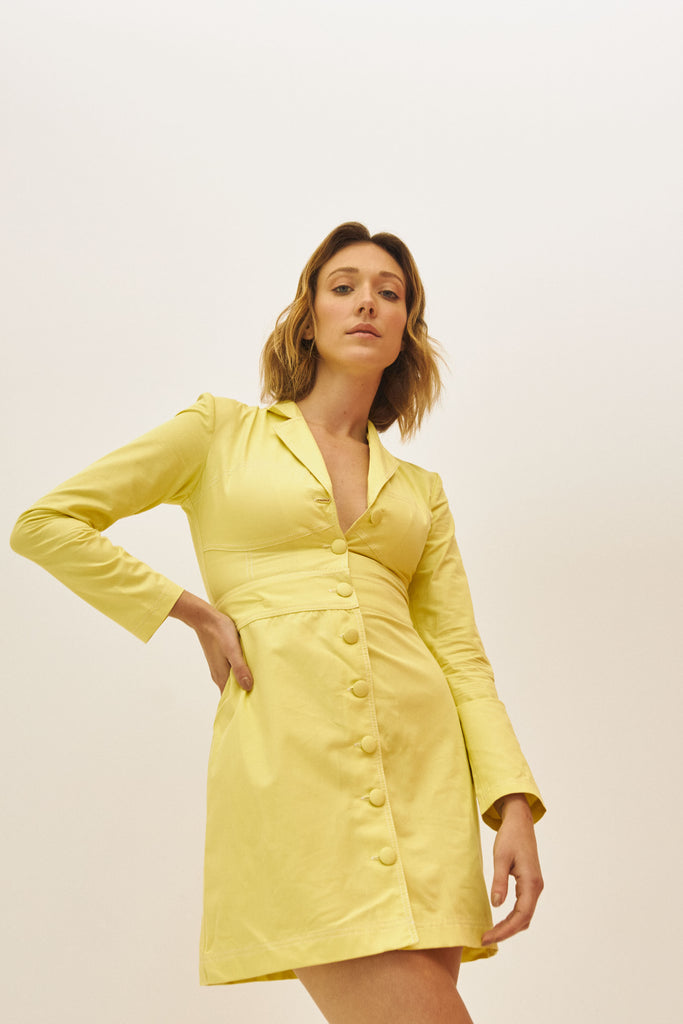 Our Margot long-sleeve mini dress has on signature contrast stitching finishes that doble as a fitted bustier.